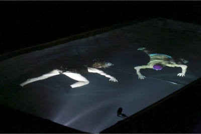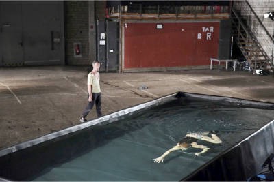 Victoria Hauke and Chris Lechner have developed a choreography in the water. They explore the sensory body on land and in the water, the liquid qualities of the inside and outside of the movements. Andi Otto performs live on synthesizers in a 4 channel sound environment.